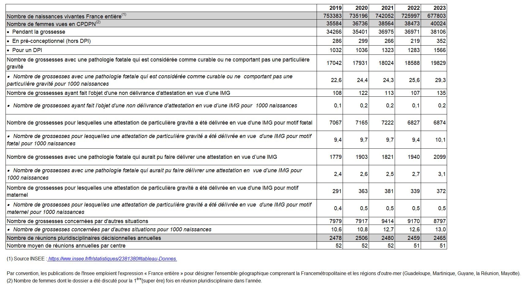 Tableau CPDPN14. Autres grossesses : nombre de femmes dont le dossier a été examiné pour la première fois(1) de 2019 à 2023