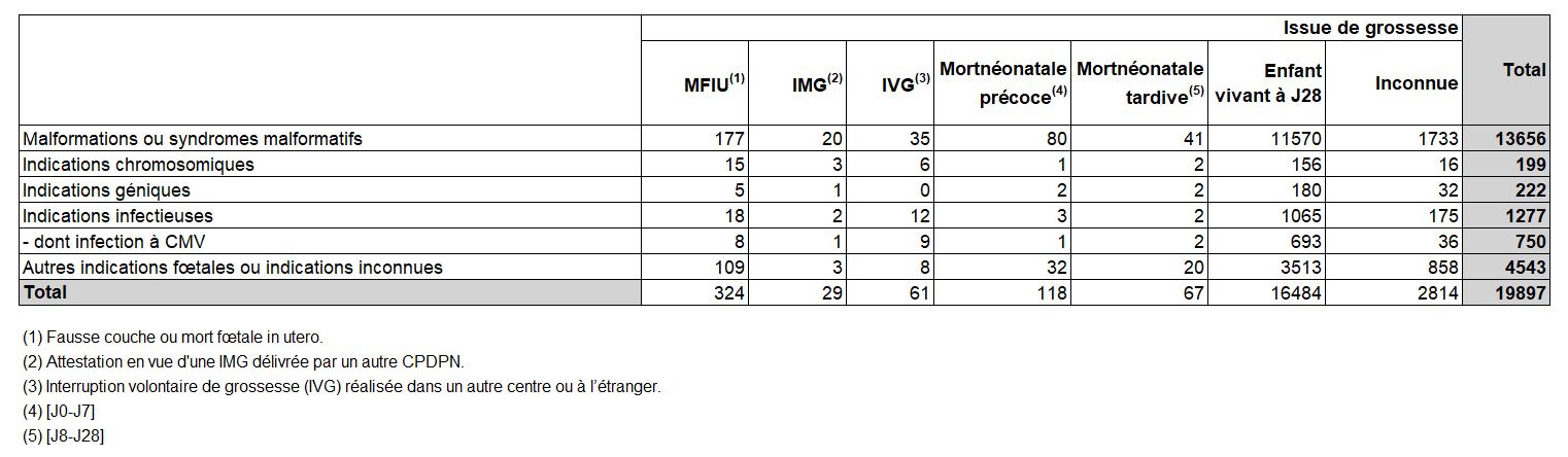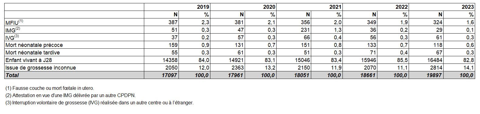 L’information relative à l’issue de grossesse est difficile à récupérer par les CPDPN. L’issue des grossesses reste inconnue dans 14,1 % des cas.