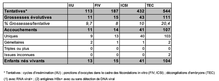 En 2023, 197 enfants sont nés après une AMP réalisée en contexte viral (tous virus confondus VIH, VHB et VHC).
