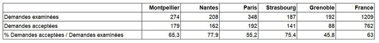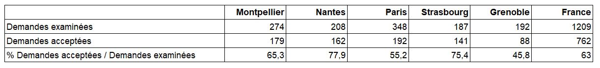 Taux d’acceptation des demandes examinées