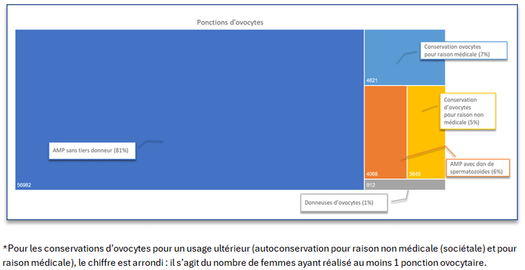 Figure AMP1 Ponctions d’ovocytes selon leur finalité, en 2023 en France. Nombre total de ponctions : près de 70 000.