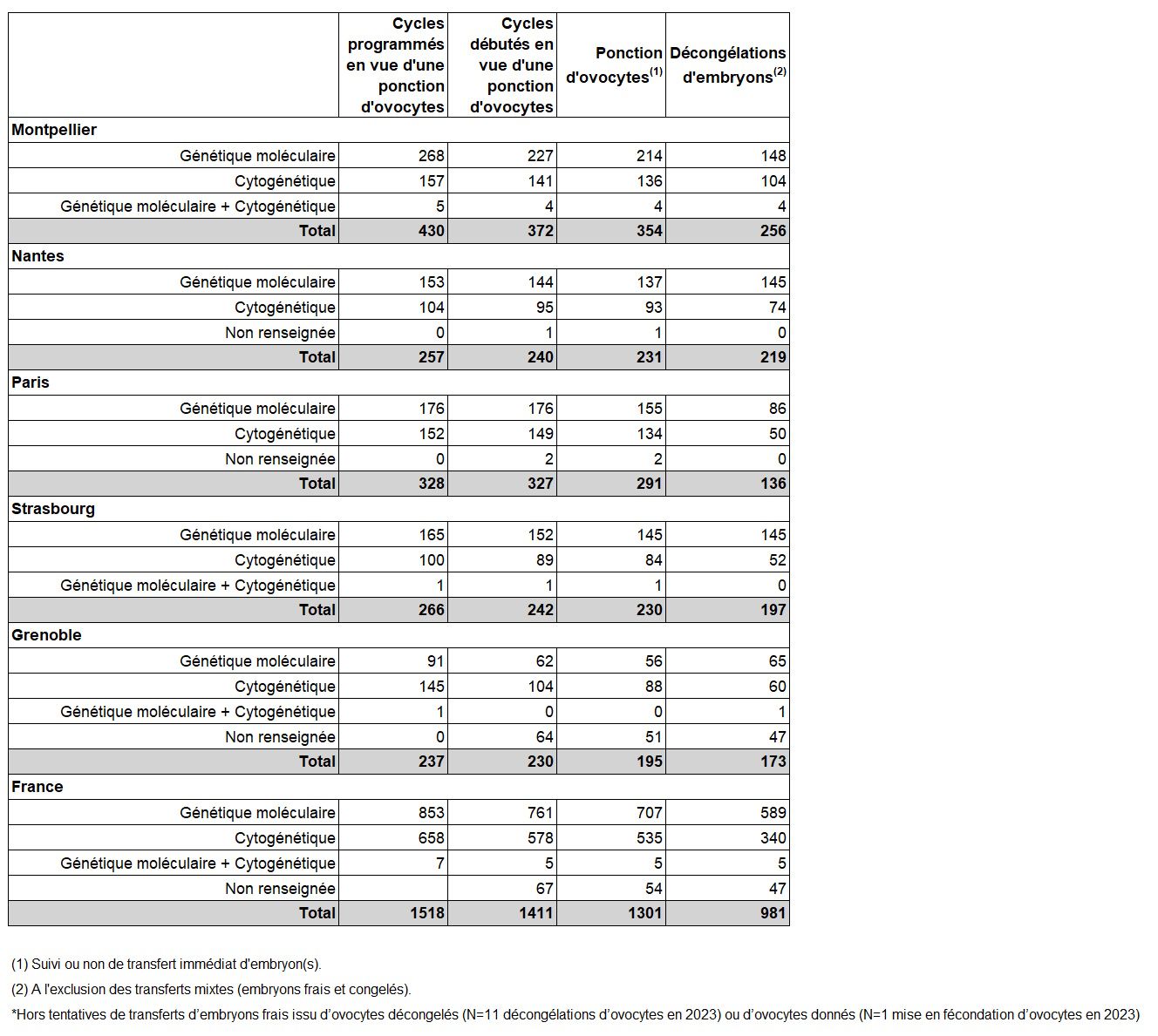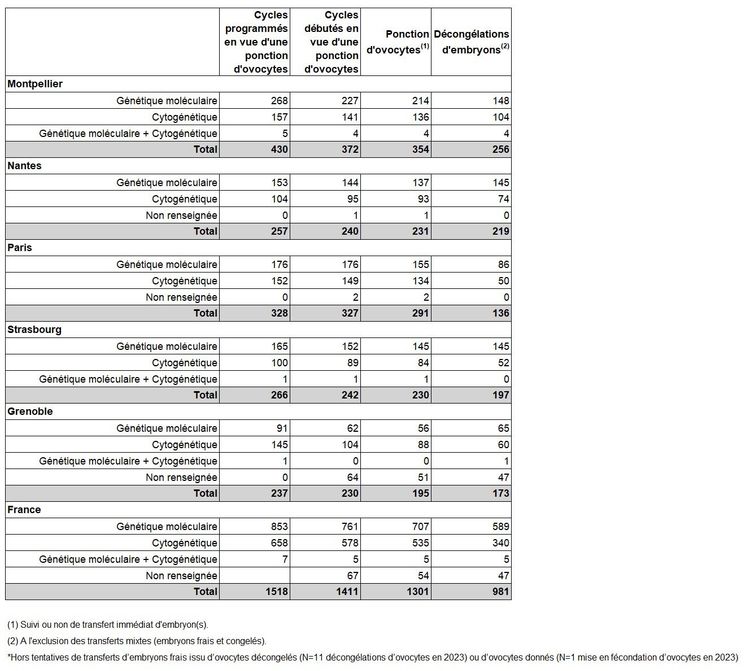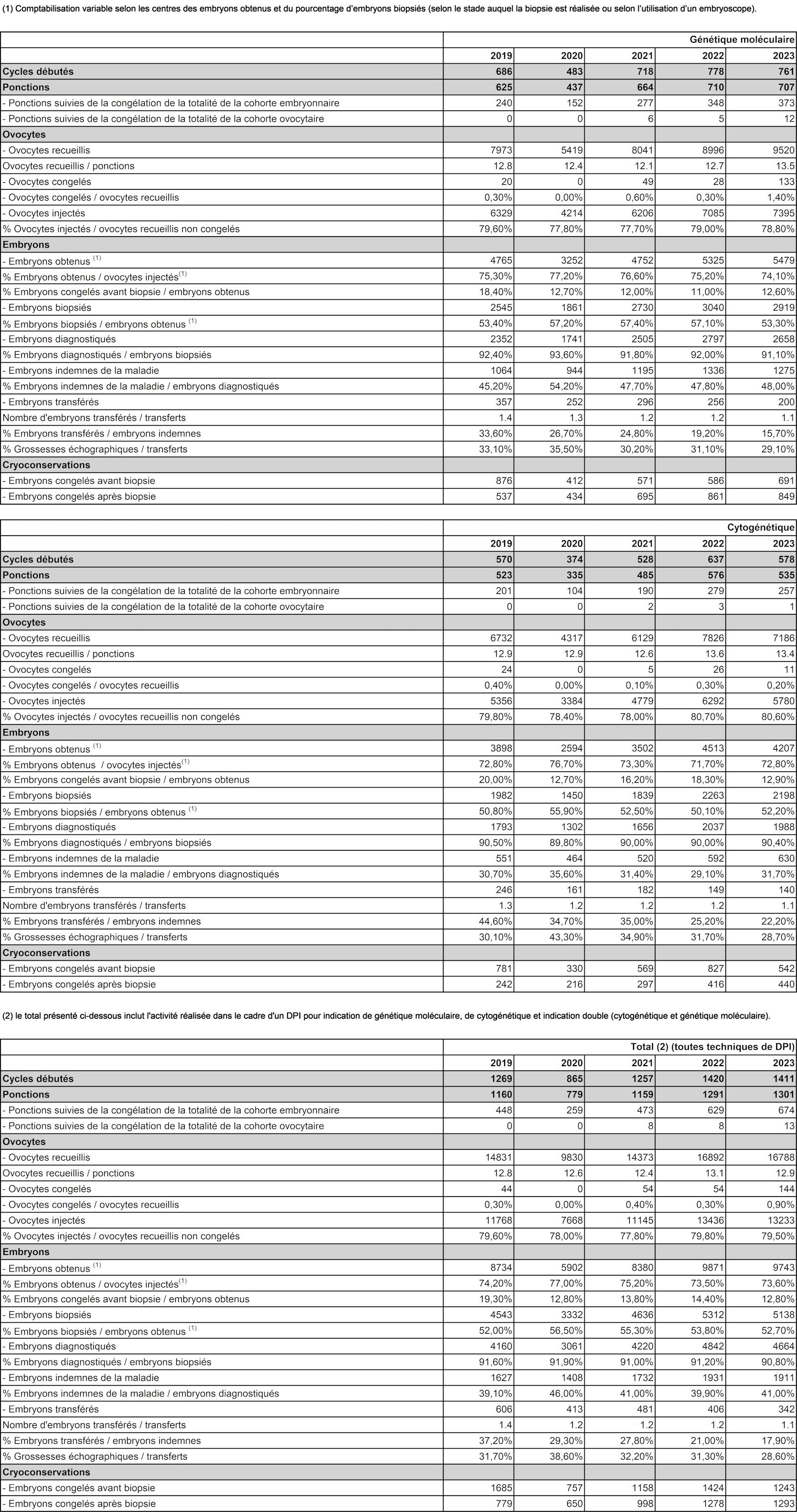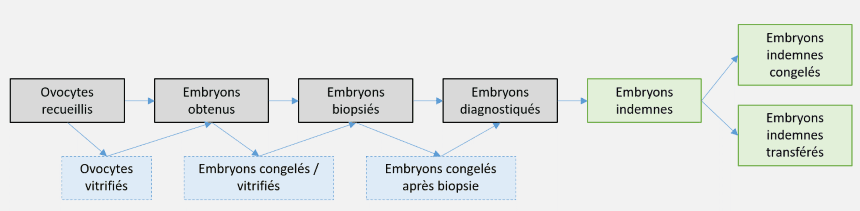 En conséquence, certains indicateurs concernant les embryons congelés avant la biopsie sont donc à interpréter avec prudence.