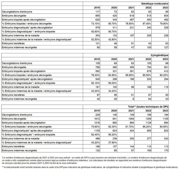 Figure DPI7. Tentatives d'AMP pour DPI avec transfert d'embryons congelés selon le moment de la biopsie en 2023