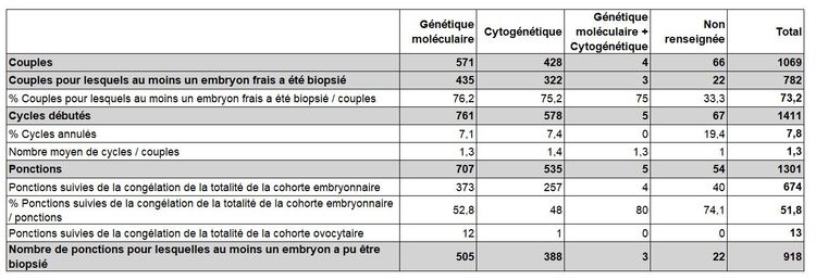 Tableau DPI14. Parcours des couples en vue de ponction pour DPI par technique en 2023