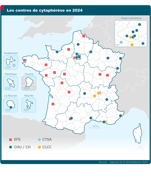 Figure CSH P1. Localisation des centres de prélèvement de CSP et CMN par cytaphérèse en 2024