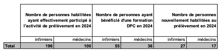 Tableau CSH P5. Personnel formé ayant participé au prélèvement en 2024