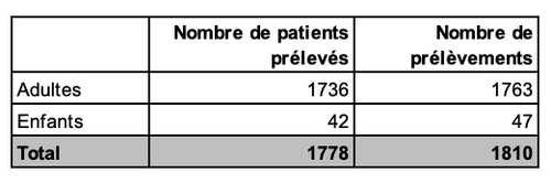 Les 38 centres autorisés au prélèvement de moelle osseuse ont rempli et renvoyé le questionnaire de prélèvement.