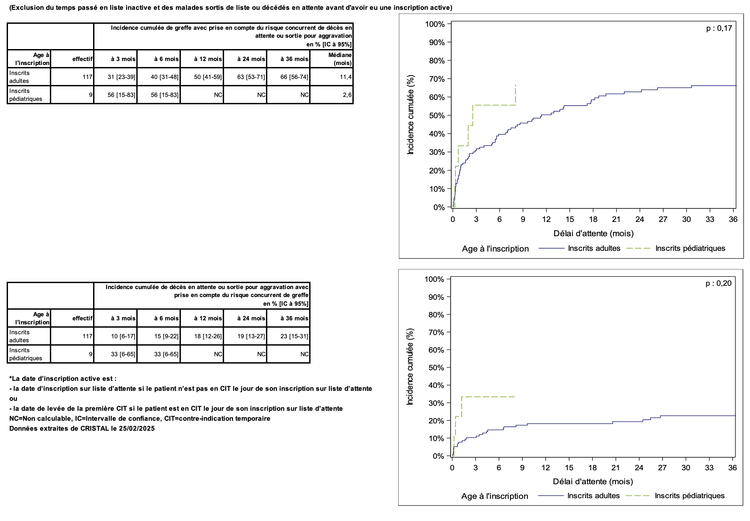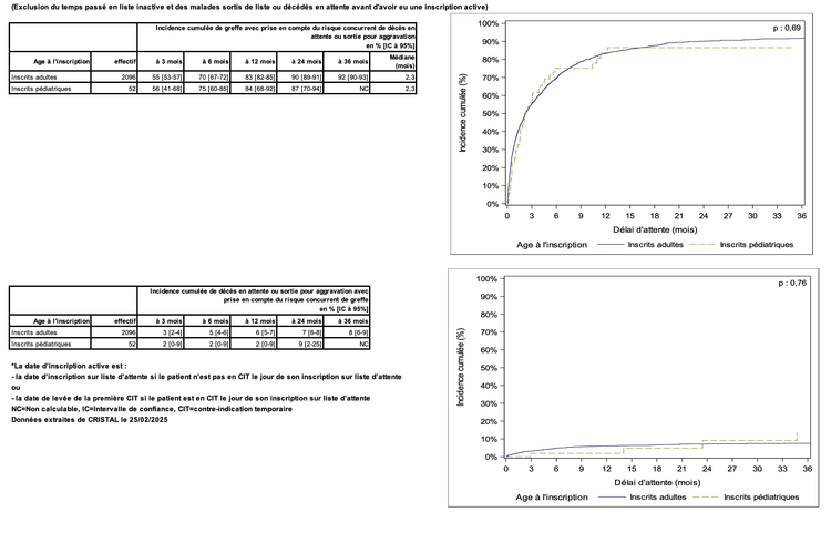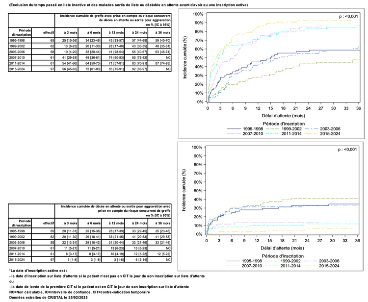 (Exclusion du temps passé en liste inactive et des malades sortis de liste ou décédés en attente avant d'avoir eu une inscription active)