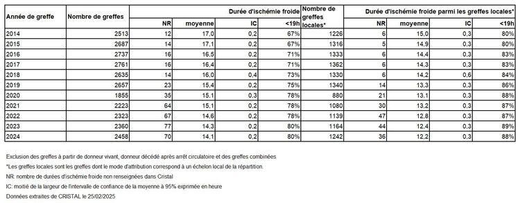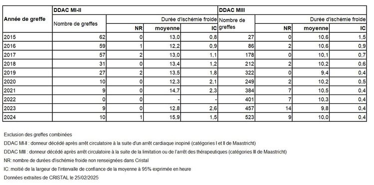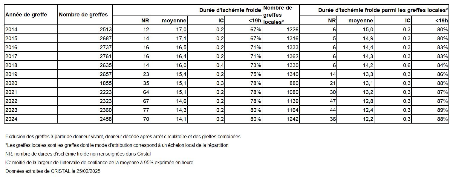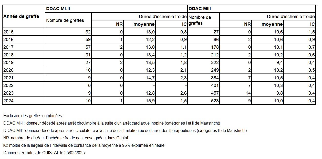 Tableau R24. Evolution des durées moyennes d’ischémie froide en heure