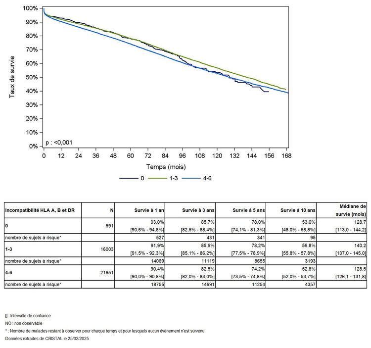 Tableau R38b. Caractéristiques des greffes selon la compatibilité HLA en super-type