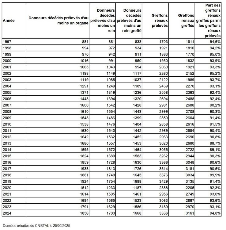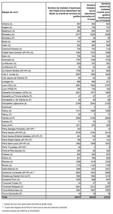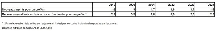 Le nombre estimé de porteurs de greffon fonctionnel en France est de 43 532 au 31 décembre 2024.