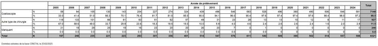 Tableau R34. Evolution du nombre de chirurgies par type
