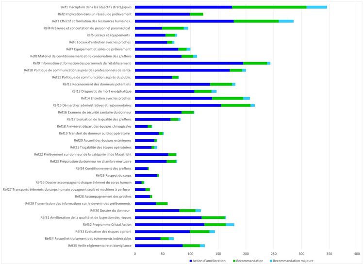 Figure 4 Nombre total d’actions, recommandations, recommandations majeures par référence